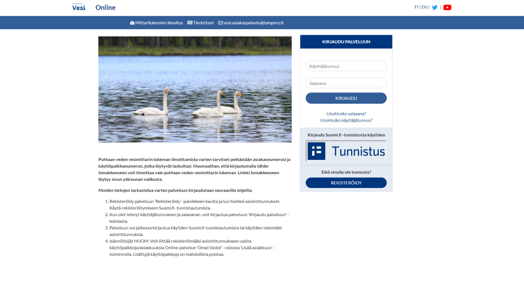 Tästä suoraan vesimittarilukeman ilmoittamiseen.